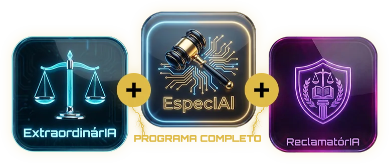 A ExtraordinárIA, a EspecIAl e a ReclamatórIA não são apenas IAs. Elas integram um Programa completo de Atuação no STF e no STJ, que reúne formação técnica aprofundada, aulas exclusivas, acesso à Comunidade da Escola Brasileira de Atuação nos Tribunais Superiores e Assistentes de Inteligência Artificial especializados na elaboração de: Recurso Extraordinário (ExtraordinárIA), Recurso Especial (EspecIAl) e Reclamação Constitucional (ReclamatórIA).
